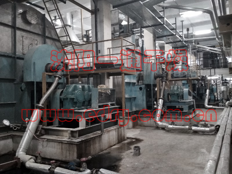 蒸汽等加熱介質(zhì)經(jīng)旋轉接頭進入干燥機,物料與列管間的接觸傳熱,列管與載濕氣體、載濕氣體與物料顆粒之間的對流換熱,以及物料顆粒層之間的熱傳導,完成傳熱傳質(zhì)過程,生成合格的干燥產(chǎn)品。干燥機排出來的潮氣可采用旋風除塵、洗滌除塵、過濾除塵、消白設備等。