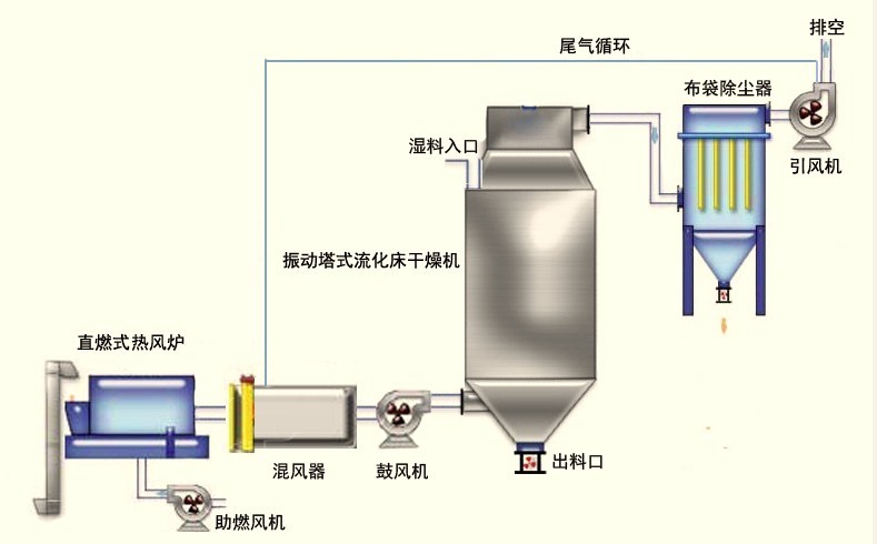 (7)尾氣多級(jí)循環(huán)利用,即達(dá)到了節(jié)能的目的,還可通過各級(jí)配風(fēng)調(diào)節(jié)干燥溫度的同時(shí),大大降低了干燥熱風(fēng)的含氧量。