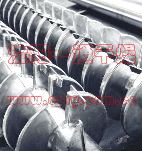 物料在輸送過(guò)程中受空心槳葉攪拌,同時(shí)受空心槳葉和夾套同時(shí)加熱進(jìn)行水分蒸發(fā)干燥,熱效率高。該機(jī)采用無(wú)級(jí)變速器連接變速箱,可根據(jù)所進(jìn)物料的性質(zhì)調(diào)節(jié)轉(zhuǎn)速。蒸發(fā)出來(lái)的水汽經(jīng)除塵器或洗滌塔除塵后,由引風(fēng)機(jī)排空。