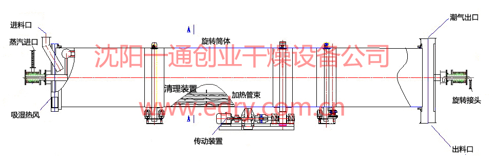 新型加熱管采用多種強化熱管組合方式,增大了換熱面積,可防止粘性物料粘管壁。 管間加裝自清理裝置和筒壁清掃裝置,避免了物料粘管粘壁,適用于粘性、濾餅狀、膏狀松散的、高濕度或低濕度等各種物料。